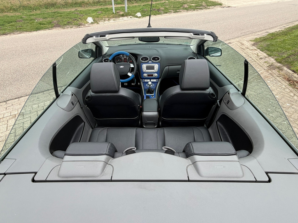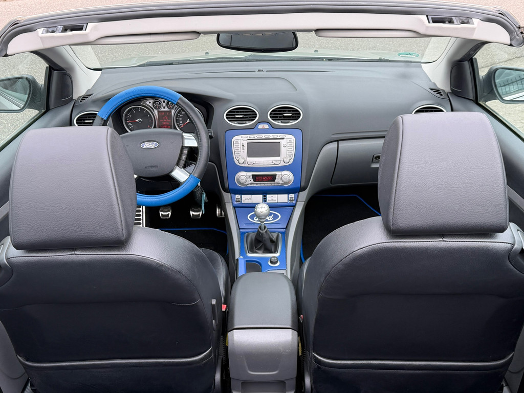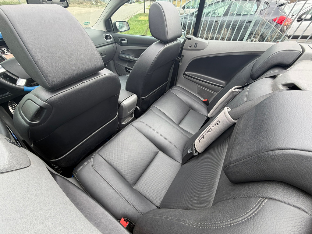 Ford, Go Further. Vooruitgang op wielen. In alle opzichten. De aandrijving van deze Ford wordt verzorgd door een viercilinder motor en een handgeschakelde versnellingsbak. Lederen bekleding is een smaakvolle en comfortverhogende optie. Een weldaad voor u en uw bijrijder: deze Ford Focus Coupé-Cabriolet heeft verwarmbare voorstoelen. De sportstoelen zorgen ervoor dat u goed en comfortabel zit, ook als het gas erop gaat. De uitmonstering van deze auto wordt gecompleteerd door onder meer 17 inch lichtmetalen velgen en sportonderstel.