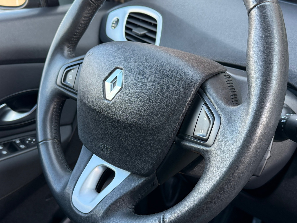 In een auto als deze kunt u niet zonder electronic climate control, zodat de temperatuur altijd goed is. Alle audioknoppen letterlijk onder handbereik: dat kan met de audiobediening op het stuur. Om de veiligheid onderweg te verhogen, heeft deze Renault zowel een automatisch inschakelbare verlichting als een regensensor aan boord, zodat hij zelf de verlichting en de ruitenwissers kan inschakelen. Zuinig zoeven, dat kan deze auto dankzij de aanwezige cruise control. De Renault is standaard voorzien van: isofix-aansluiting, centrale deurvergrendeling met afstandsbediening, toerenteller, bagage afdekhoes, bekerhouder en lederen versnellingspook.