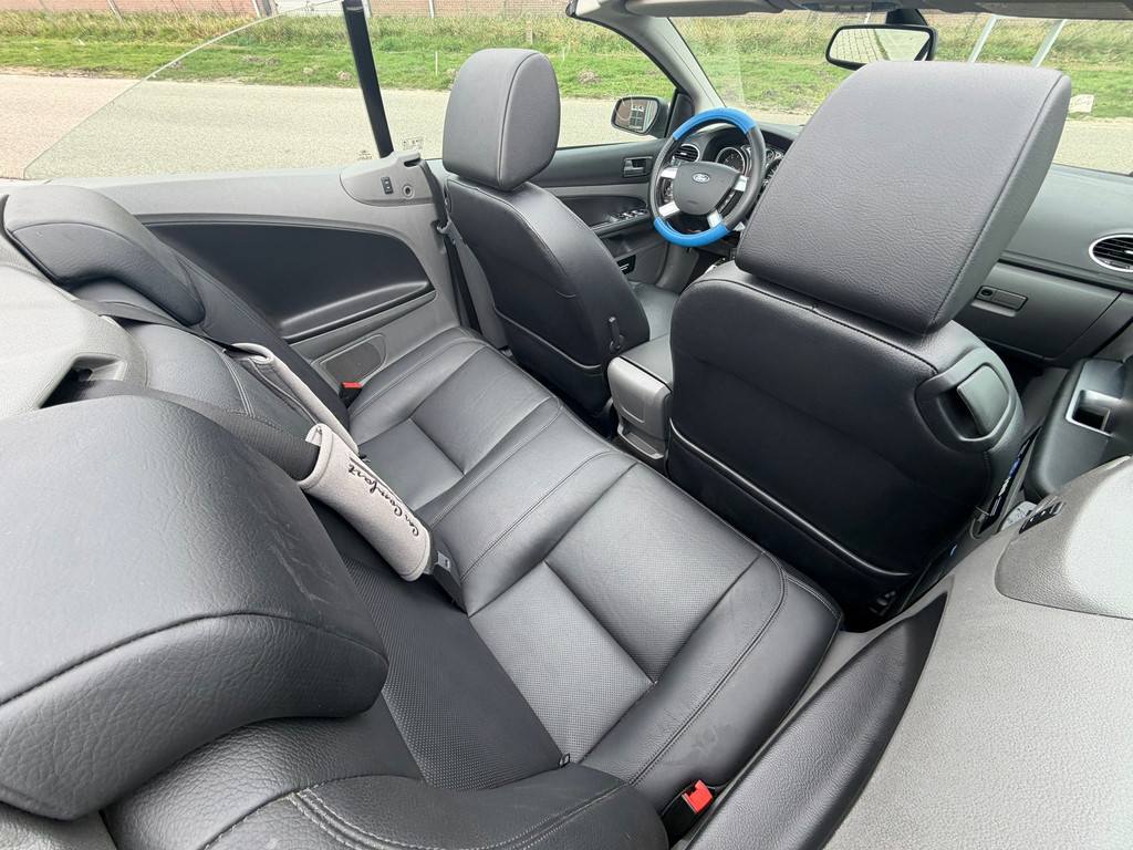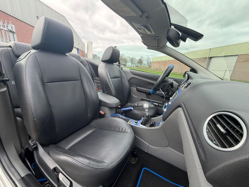 Ford, Go Further. Vooruitgang op wielen. In alle opzichten. De aandrijving van deze Ford wordt verzorgd door een viercilinder motor en een handgeschakelde versnellingsbak. Lederen bekleding is een smaakvolle en comfortverhogende optie. Een weldaad voor u en uw bijrijder: deze Ford Focus Coupé-Cabriolet heeft verwarmbare voorstoelen. De sportstoelen zorgen ervoor dat u goed en comfortabel zit, ook als het gas erop gaat. De uitmonstering van deze auto wordt gecompleteerd door onder meer 17 inch lichtmetalen velgen en sportonderstel.