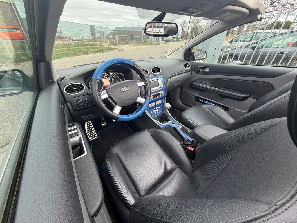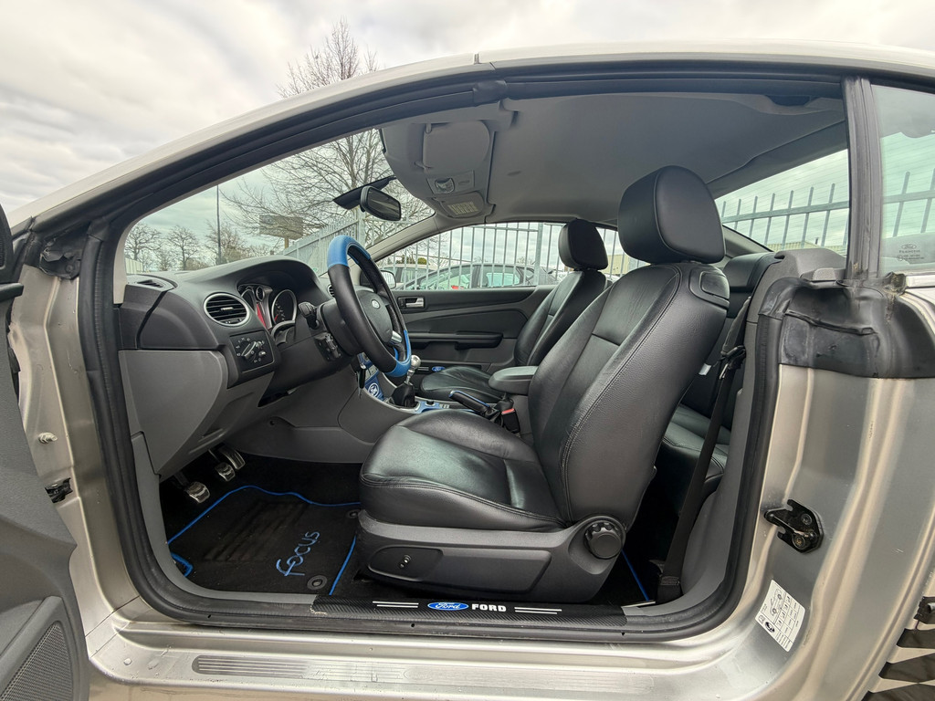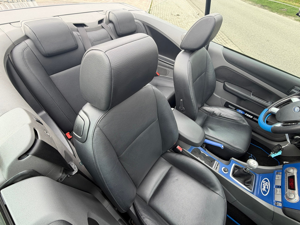 Ford, Go Further. Vooruitgang op wielen. In alle opzichten. De aandrijving van deze Ford wordt verzorgd door een viercilinder motor en een handgeschakelde versnellingsbak. Lederen bekleding is een smaakvolle en comfortverhogende optie. Een weldaad voor u en uw bijrijder: deze Ford Focus Coupé-Cabriolet heeft verwarmbare voorstoelen. De sportstoelen zorgen ervoor dat u goed en comfortabel zit, ook als het gas erop gaat. De uitmonstering van deze auto wordt gecompleteerd door onder meer 17 inch lichtmetalen velgen en sportonderstel.