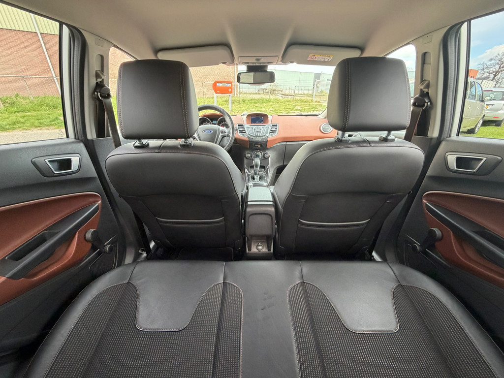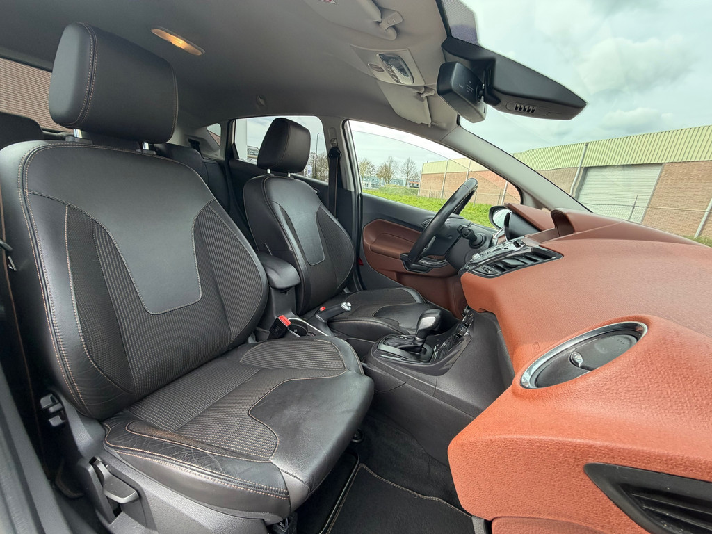 Ford, Go Further. Vooruitgang op wielen. In alle opzichten. De aandrijving van deze Ford wordt verzorgd door een driecilinder motor en een automatische transmissie. De hoogwaardige, lederen bekleding benadrukt de kwaliteit van deze Ford. 's Winters komen de verwarmbare voorstoelen heerlijk van pas. Bij de rijke uitrusting horen ook 16 inch lichtmetalen velgen, LED-dagrijverlichting, extra getint glas en in delen neerklapbare achterbank.