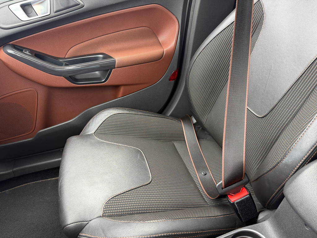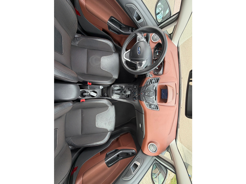 Ford, Go Further. Vooruitgang op wielen. In alle opzichten. De aandrijving van deze Ford wordt verzorgd door een driecilinder motor en een automatische transmissie. De hoogwaardige, lederen bekleding benadrukt de kwaliteit van deze Ford. 's Winters komen de verwarmbare voorstoelen heerlijk van pas. Bij de rijke uitrusting horen ook 16 inch lichtmetalen velgen, LED-dagrijverlichting, extra getint glas en in delen neerklapbare achterbank.