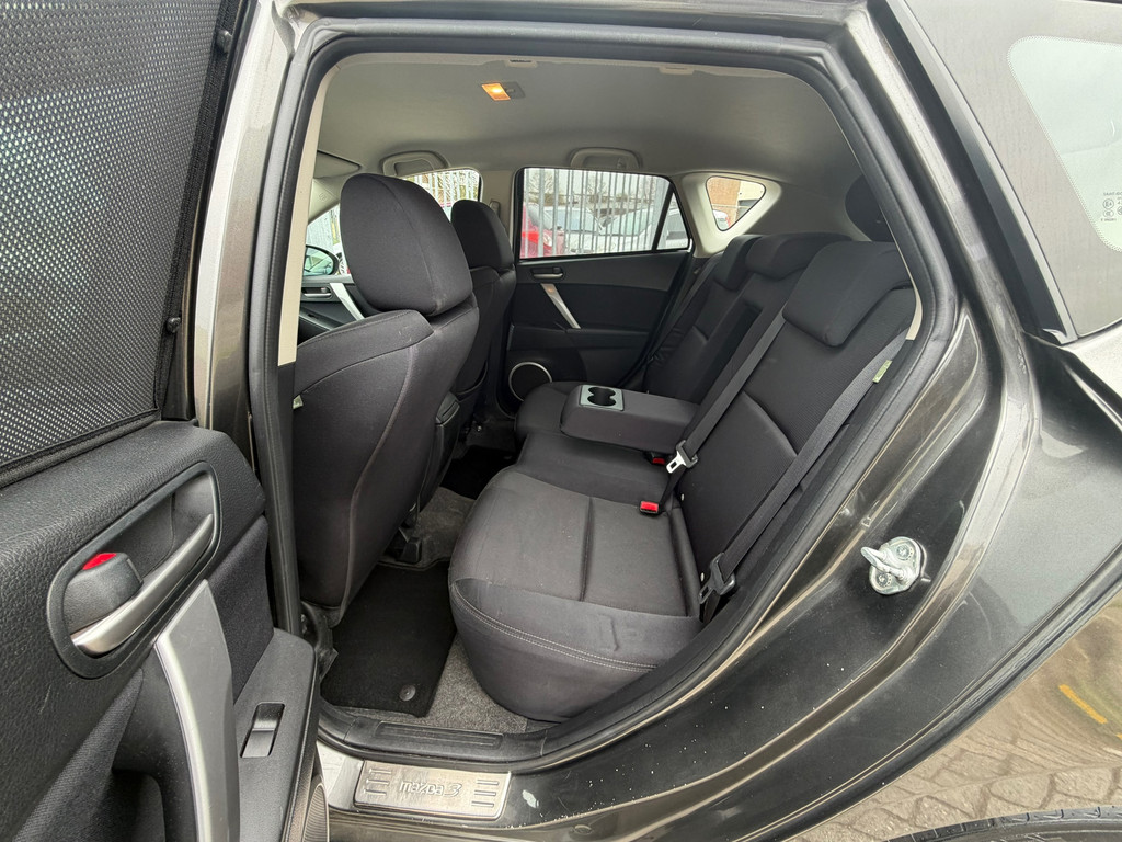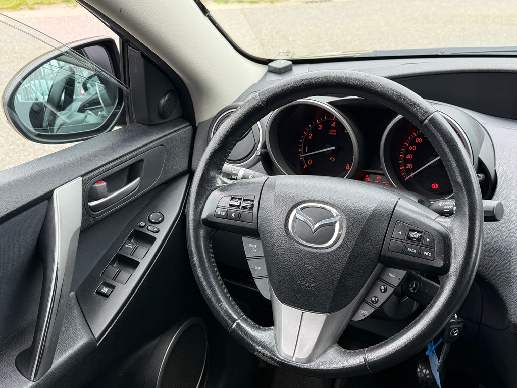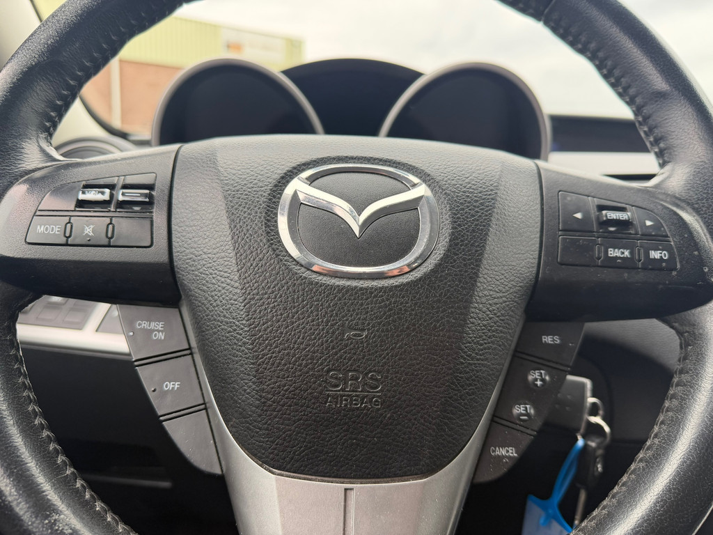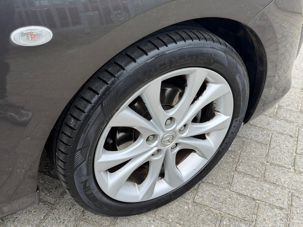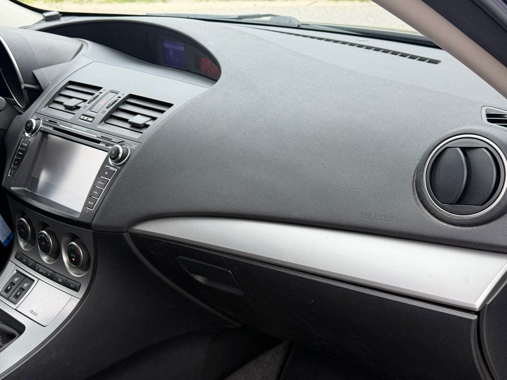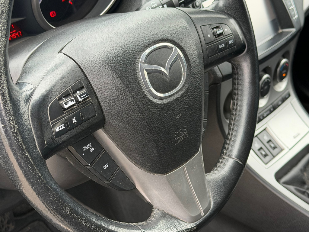 Het navigatiesysteem is uw vertrouwde gids, waarheen de reis ook gaat. Natuurlijk is er ook automatische airconditioning aanwezig. Alle audiofuncties zitten onder uw vingertoppen door de audiobediening op het stuur. Geen parkeervak is te klein dankzij de assistentie van de parkeersensoren. Natuurlijk is een complete auto als deze ook voorzien van sensoren die de omgeving in de gaten houden. Deze Mazda heeft niet alleen een automatisch inschakelbare verlichting aan boord, maar ook een regensensor. De uitrusting van deze Mazda is met cruise control, automatisch dimmende binnenspiegel, isofix-aansluiting, centrale deurvergrendeling met afstandsbediening, toerenteller en bekerhouder behoorlijk compleet.